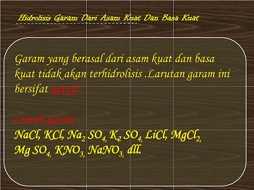 Hidrolisis garam dari asam kuat dan basa lemah garam yang terbentuk terhidrolisis sebagian/p .